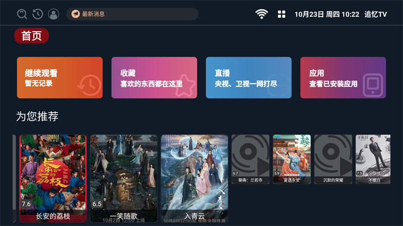 1、首先在下载并安装追忆TV电视去广告免费版,安装完成后打开app进入到主界面。