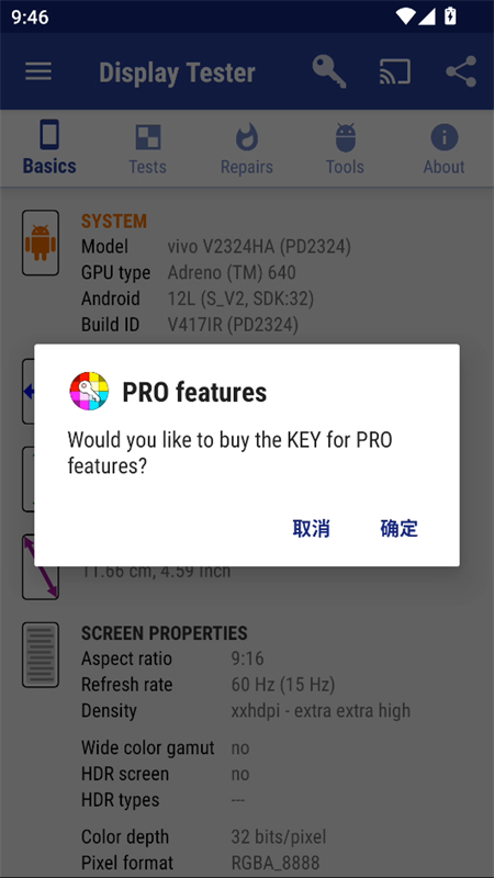 Display Tester汉化版目前被广泛的应用于手机、平板、智能电视等方面,相关用户在这里可以进行一系列测试操作,包括了:坏点检测、屏幕对比度测试、饱和度测试、伽马校准等等。同时,该软件还可以通过高亮度扫描线等一系列方式来缓解屏幕烧屏现象。此外,该软件还能够测量屏幕尺寸、分辨率、像素点等一系列信息并且可以生成对应的趋势图,确保了屏幕效果的变化情况。
