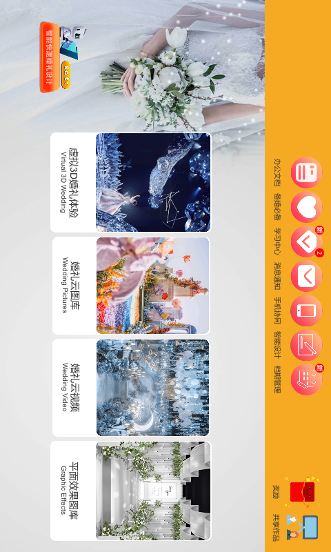 2、系统内置几千套无水印婚礼现场图片,婚礼现场短视频,婚礼效果图以及3D婚礼虚拟体验系统。带给新人沉浸式婚礼体验,助力策划师谈单