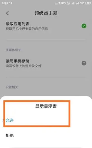 3、把该软件的“显示悬浮窗”功能设置为允许;
