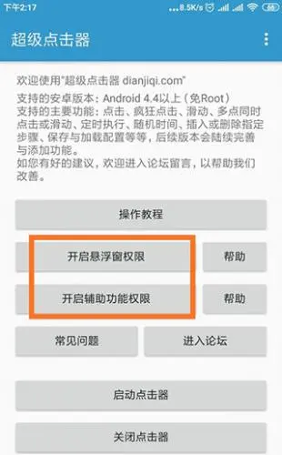 4、开启辅助功能权限并设置为打开状态;5、此时点击“启动点击器”,右侧便会出现悬浮窗按钮,长按或点击该按钮即可进入设置界面。