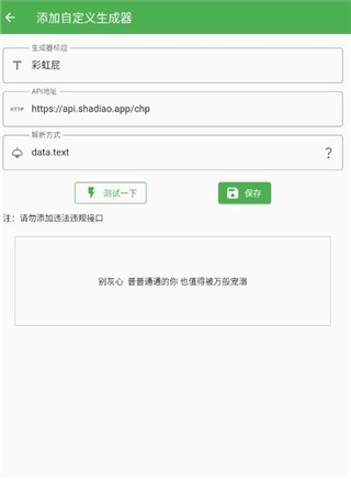 3、也可以自定义生存器,输入标题、地址和解析方式