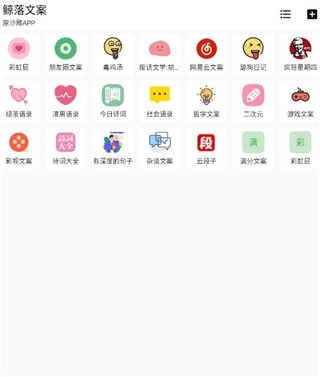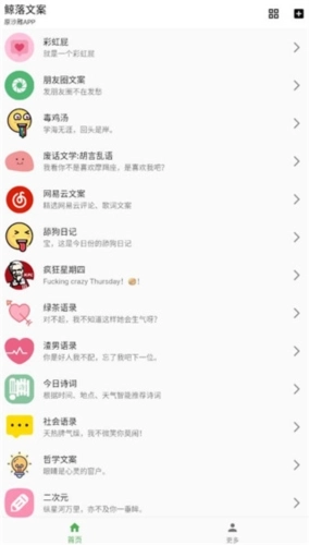 3、选择不同主题的文案类型,即可查看对应主题之中的各种精美文案内容