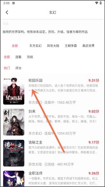 3、选择您感兴趣的分类后,您将看到一系列相关的小说列表。