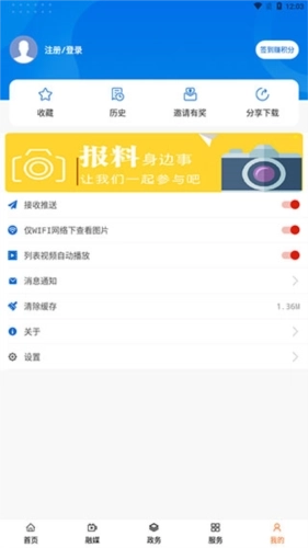 4、【服务】页面为我们提供了政务矩阵、查机票、看电影等大量政务与生活服务。