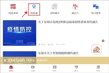 1、打开软件后,在首页点击“防疫通”