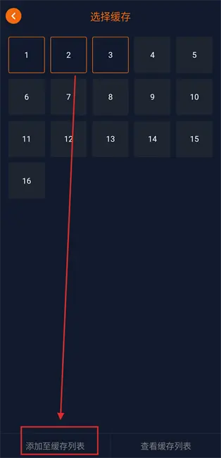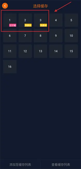2、选择需要缓存的集数后点击左下角的【添加至缓存列表】