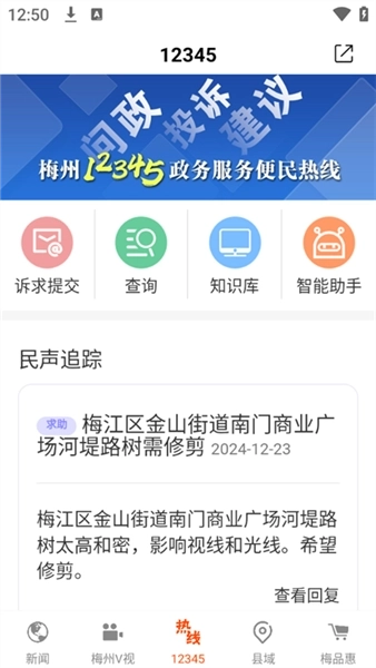 3、在12345平台界面中,我们能够开展问政、投诉、提出建议等一系列相关操作。