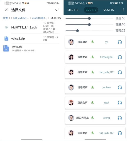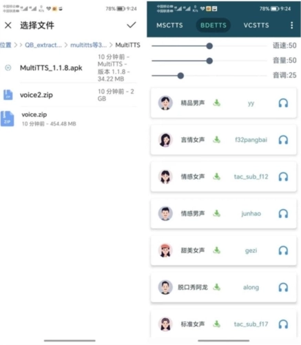 MultiTTS是一款十分实用的语音存储工具,想必不少人在长时间阅读小说后,眼睛容易产生明显的疲惫感,这时就能借助这款软件,把文字快速转换成语音朗读模式,既能让双眼得到放松,又能继续聆听喜爱的小说内容;MultiTTS的操作方式其实很简单,只需准备好voice.zip语音包,接着导入文章就能开始使用了,平台整合了4个平台上的优质引擎,定会为你带来出色的听觉享受!