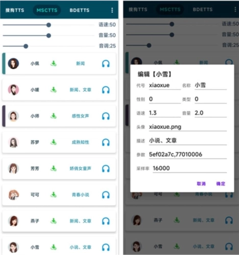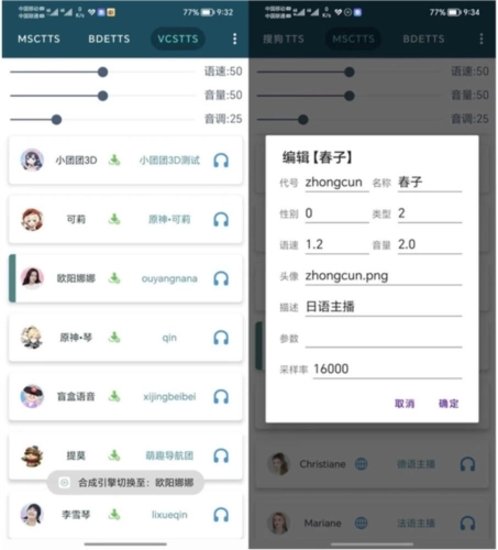 长按头像编辑发音人