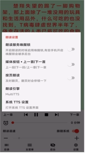 4、之后在其他阅读小说的软件中,直接选用系统默认的TTS引擎进行朗读即可。
