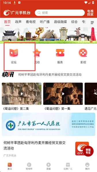 大话利州手机版是一款由广元市广播电视台推出的掌上新闻资讯阅读,又被称为广元手机台,如今重磅打造UI界面,更加清爽整洁,各类新闻资源详细分类,让用户可以更加轻松的了解查询,享受愉快的阅读时光!在大话利州最新版中包含了资讯、广播、论坛圈子、直播、吃喝玩乐等一系列内容,让用户在广元当地的生活更加丰富。随身看电视、听广播,每一个精彩瞬间都不错过,如果遇到不公平的事情还能通过发帖进行报料,专业的工作人员会用最快的速度替你解决,感兴趣的用户欢迎前来吧!