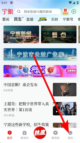 打开宁聚应用后,在主界面找到底部的“我的”按钮并点击,即可进入个人中心页面。