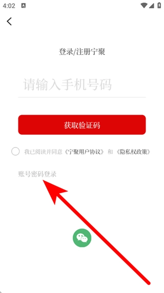 在登录界面,点击“账号密码登录”选项,即可切换到密码登录页面。