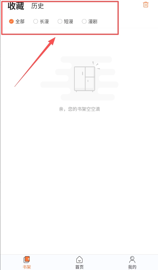 您可以在这里对阅读内容进行个性化管理,查看自己的收藏记录和阅读历史,还能把喜欢的作品添加到书架中。