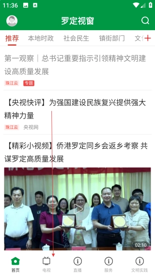 打开罗定视窗,点击【电视】。