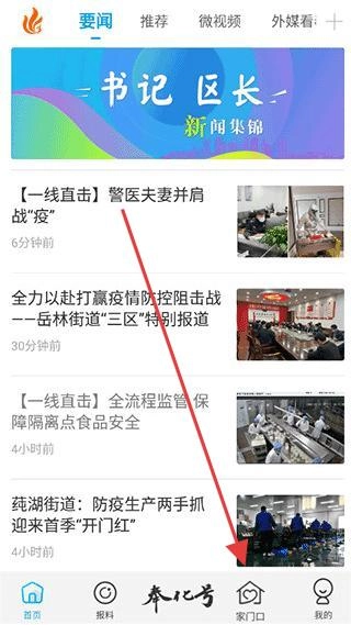 打开掌上奉化,点击【家门口】。
