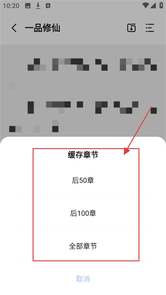 点击缓存图标后,会弹出【后50章】【后100章】【全部章节】的选项,按照自己的需求选择,就能缓存对应的章节了。