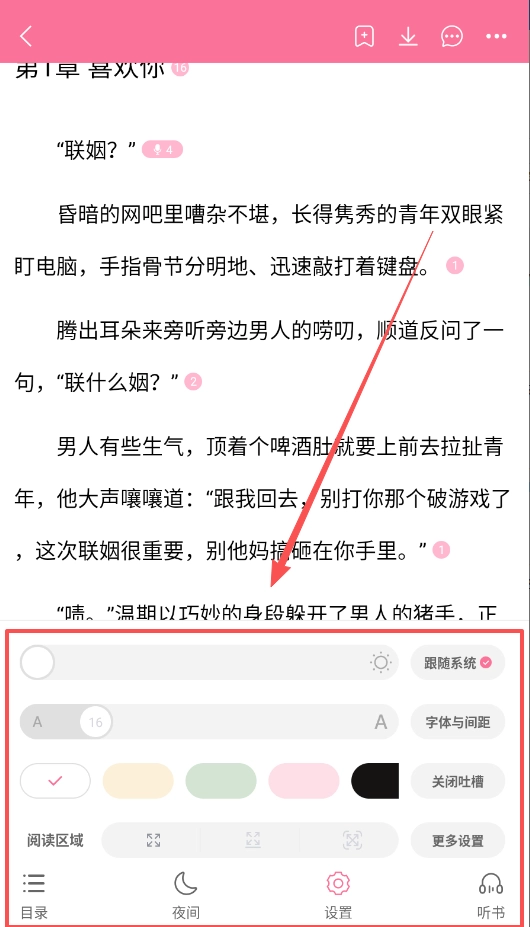 找到喜欢的小说后,直接点击封面即可开始阅读;阅读过程中,你可以调整字体大小与屏幕亮度;继续向下滑动页面,就能顺畅追更后续剧情。