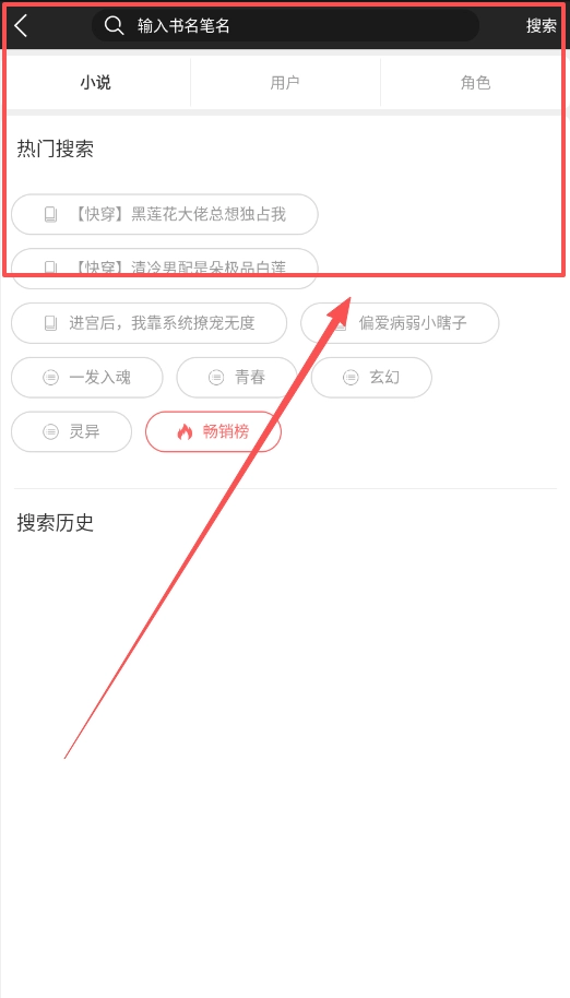 若你要查找特定的小说,可点击页面顶部的搜索图标,接着在弹出的搜索框中输入书名、作者笔名或者相关关键词,此时系统便会呈现出热门搜索内容以及你的历史搜索记录。