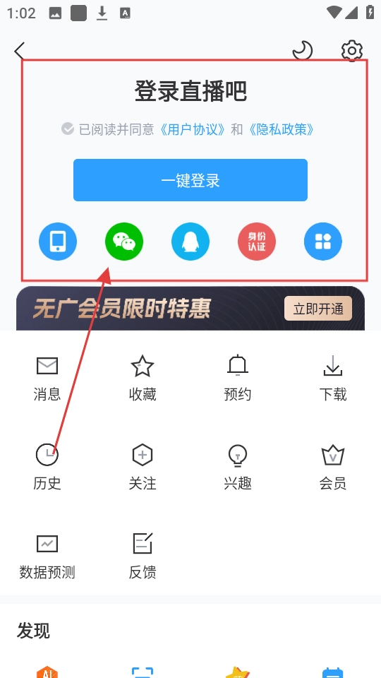 登录界面提供【一键登录】以及微信等多种登录方式,选择微信登录十分便捷,建议您尝试一下。