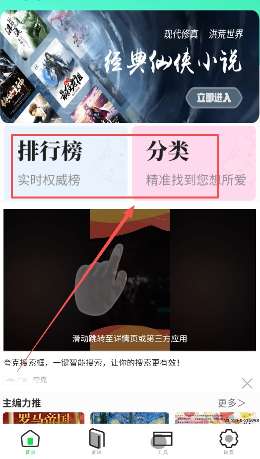 首页的搜索框堪称宝藏工具,输入关键词即可直达目标内容;若搭配分类与排行榜进行浏览,再借助滑动操作实现页面跳转,使用体验会更上一层楼。