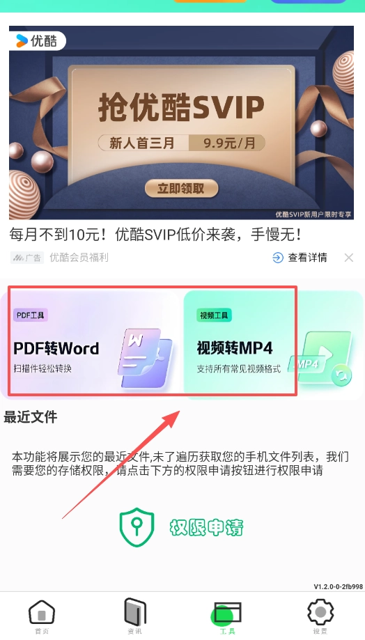 工具页面里藏着不少实用功能,文件管理可以分类整理视频和图片,还有PDF转Word、视频转MP4这类便捷的小工具。