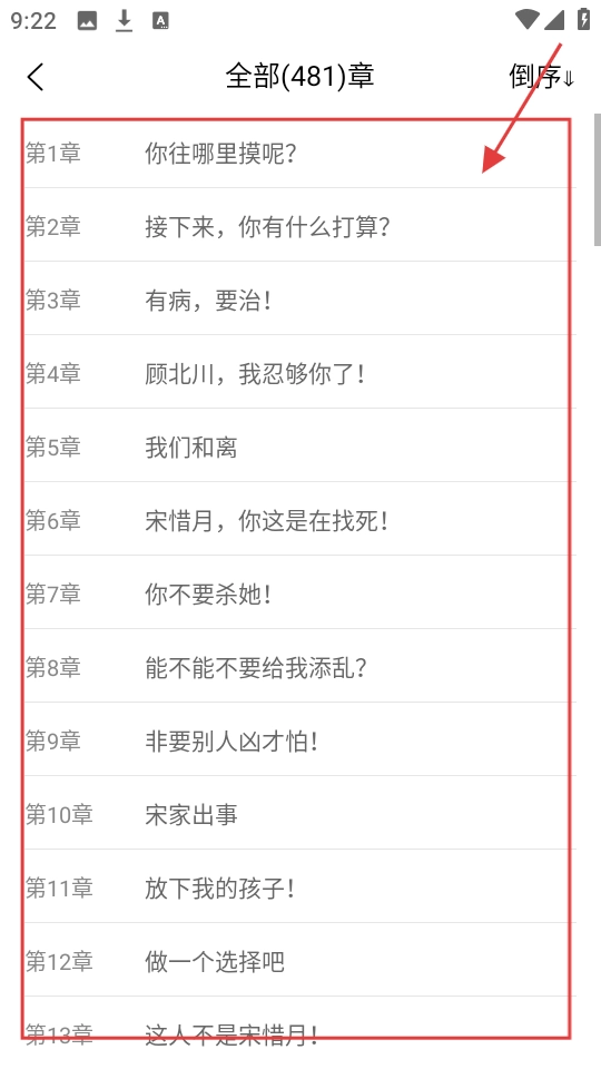 进入书籍详情页后,点击【目录】按钮,就能跳转到章节列表页面,查看这本书的各章节内容了。