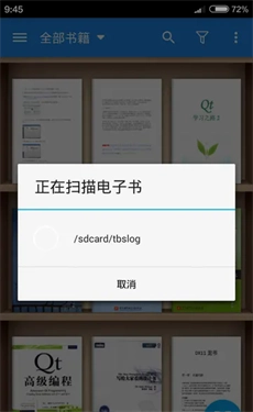 点击“确定”按钮后,应用便开始扫描指定目录下的书籍,并在导入之后给出一个已导入书籍的列表。