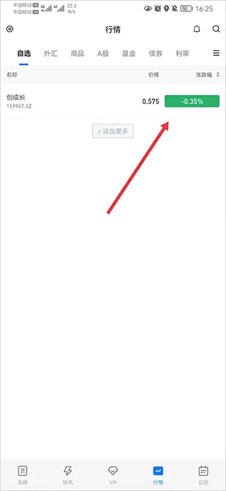 4、接着回到行情界面,便能实时查看该股票的涨跌幅状况。