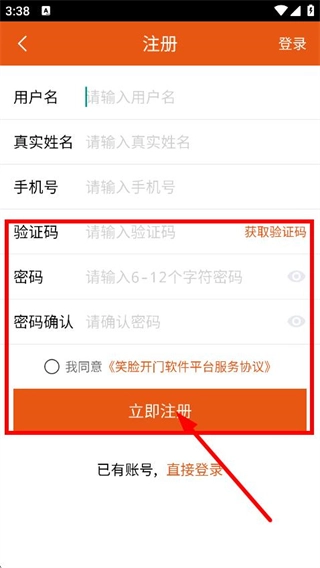 笑脸开门怎么注册账号和密码
