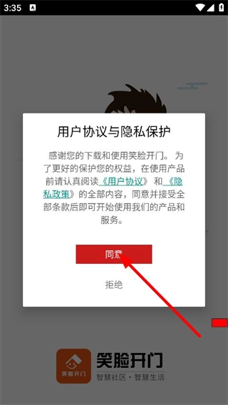 在用户协议和隐私保护的弹窗里,点击“同意”按钮,即可进入登录页面。