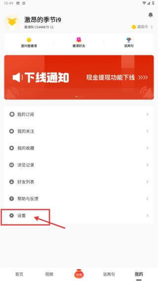 在个人中心页面,选择设置选项,进入设置界面。