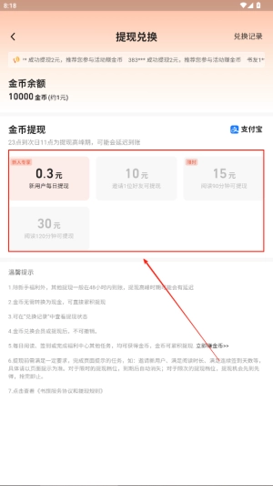 点击“提现”按钮,即可进入提现流程来提取您的金币收益。