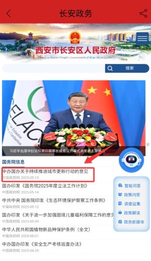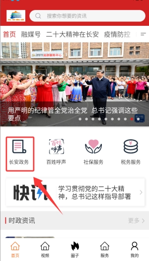登录长安融媒后,在首页底部的功能栏里找到“长安政务”图标,点击该图标就能进入政务信息专区了。