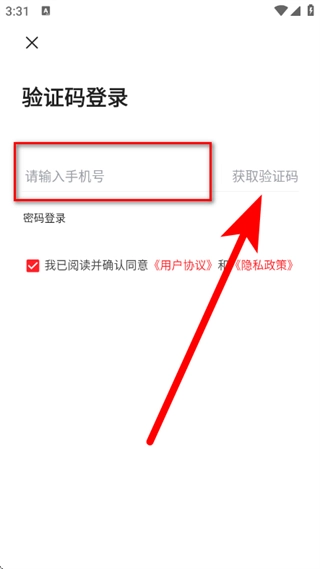 输入手机号码,勾选“已阅读并确认同意”选项后,点击“获取验证码”按钮。