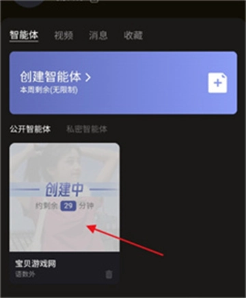 1、进入“我的”页面,点击“创建智能体”(新人登录可获得无限创建机会)