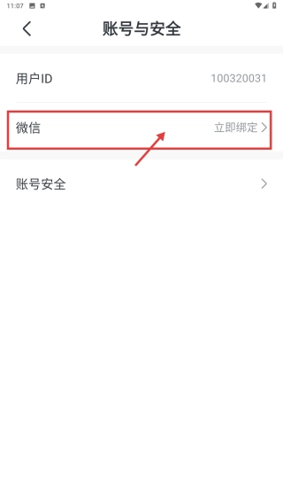 在账号安全界面,点击微信立即绑定选项,进行微信账号绑定操作。