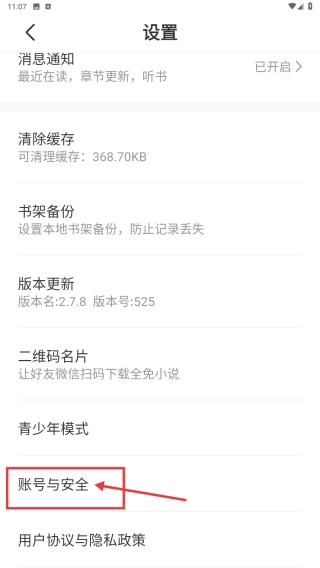 在设置页面,点击“账号与安全”选项,即可进入账号安全管理界面。