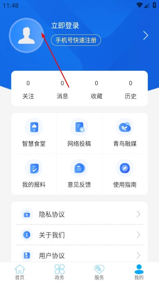点击页面右下角的我的,进入个人相关页面。