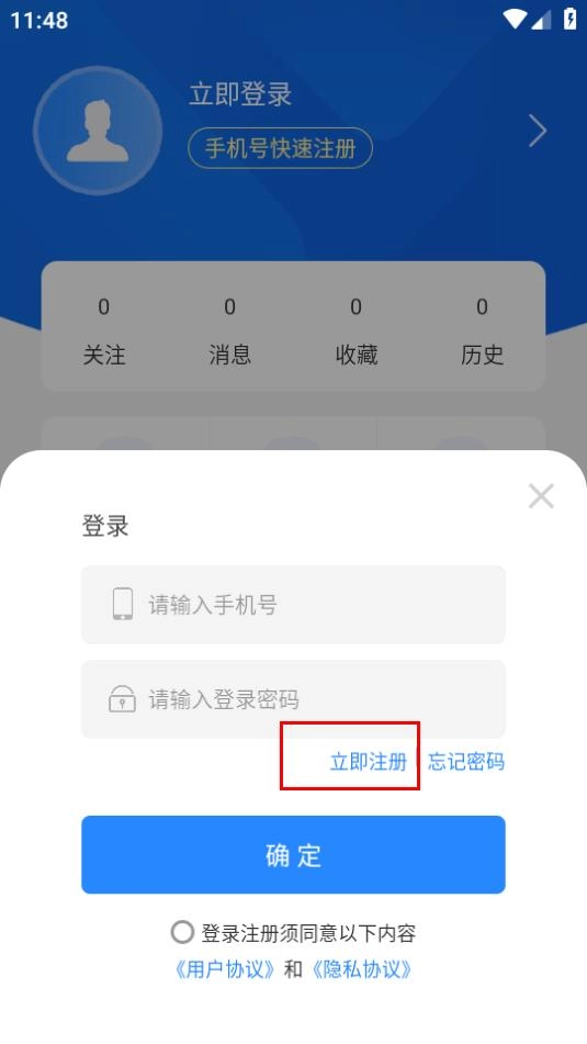 在登录界面,点击立即注册选项,进入注册界面。