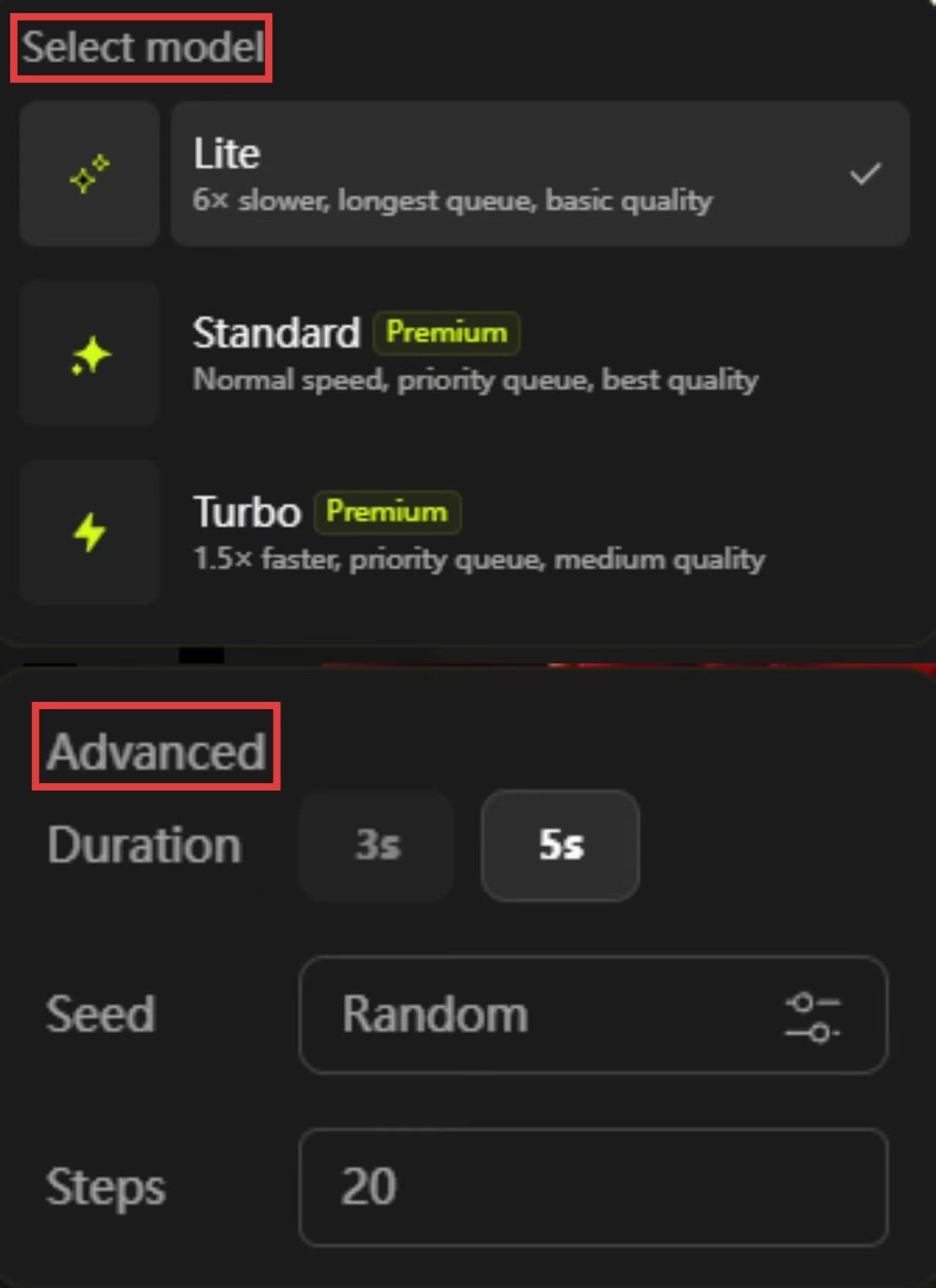 3、可对生成模型及视频参数(如时长、随机种子等)进行自定义设置,以此优化生成效果。