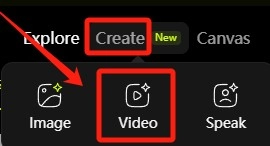 1、启动软件后,点击界面左上角的「创作」按钮,接着在弹出的选项中选择「视频」这一项。