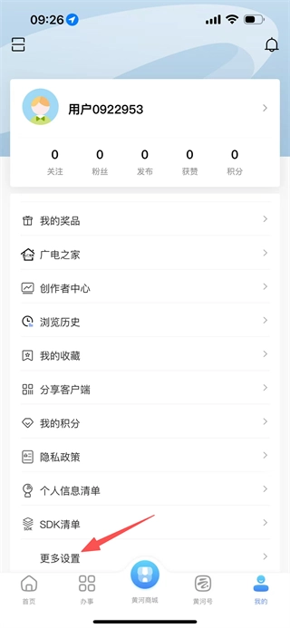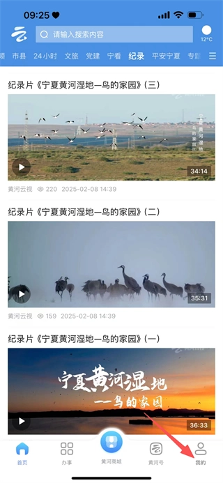1、在黄河云视首页,点击底部我的,进入个人页面。