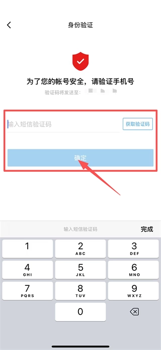 6、进入身份验证页面后,输入收到的短信验证码,接着点击确定按钮,即可完成身份验证这一步骤。