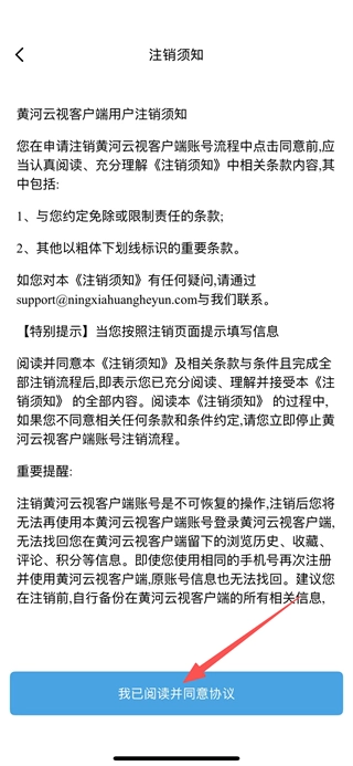 5、进入注销须知页面后,勾选“我已阅读并同意协议”选项,随后跳转至身份验证页面。