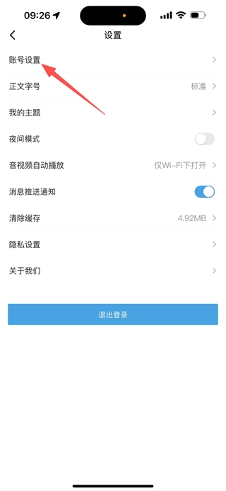 3、在设置页面,点击账号设置,进入账号设置页面。