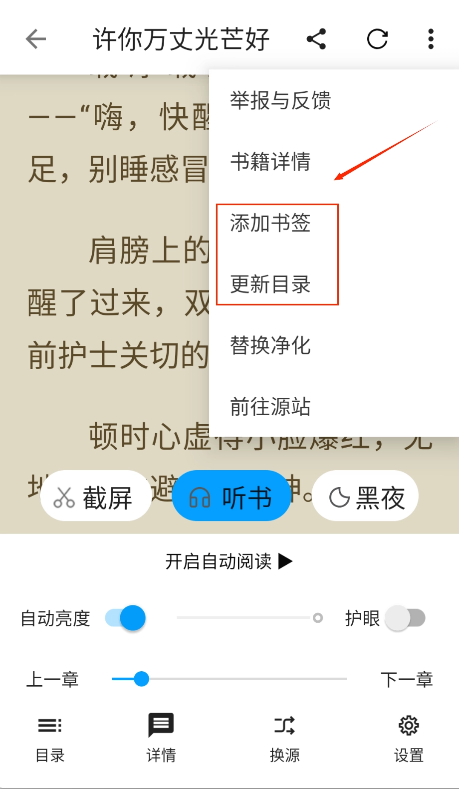 2、阅读时能根据不同环境需求调节屏幕亮度与字体大小,自动书签功能会记录最后浏览位置,省去手动操作的麻烦,还支持单页或双页滚动模式。