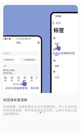 个性化标签功能:我们会给每句经典名句都配上专属的个性化标签,这样您就能按照主题或者情感倾向来分类查找名句了,让您收藏的内容变得更有条理。