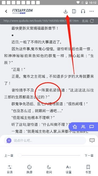 现在我们已经进入小说的阅读界面了,先点击手机屏幕的中心位置,接着再点击右上角的那个图标。